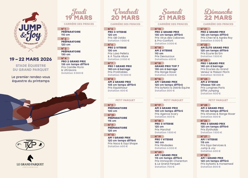 Au cœur du Grand Parquet, quatre jours de compétition intense, d’émotion équestre et de convivialité vous attendent. Cavaliers professionnels, amateurs et jeunes talents s’affronteront sur des parcours exigeants, prêts à relever des défis sportifs tout en partageant leur passion pour le saut d’obstacles.